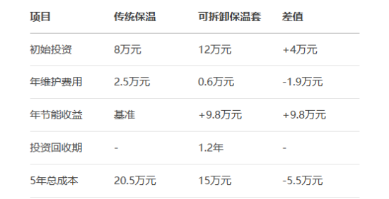 數據表明,雖然初始投資高50%,但可拆卸方案可在14個月內通過節能收益收回差價。