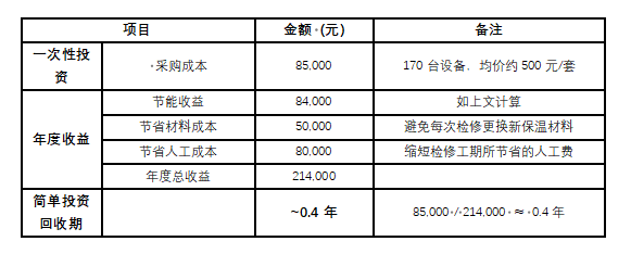 經濟效益:極短的投資回收期和長期的運行成本節約,帶來了可觀的投資回報。