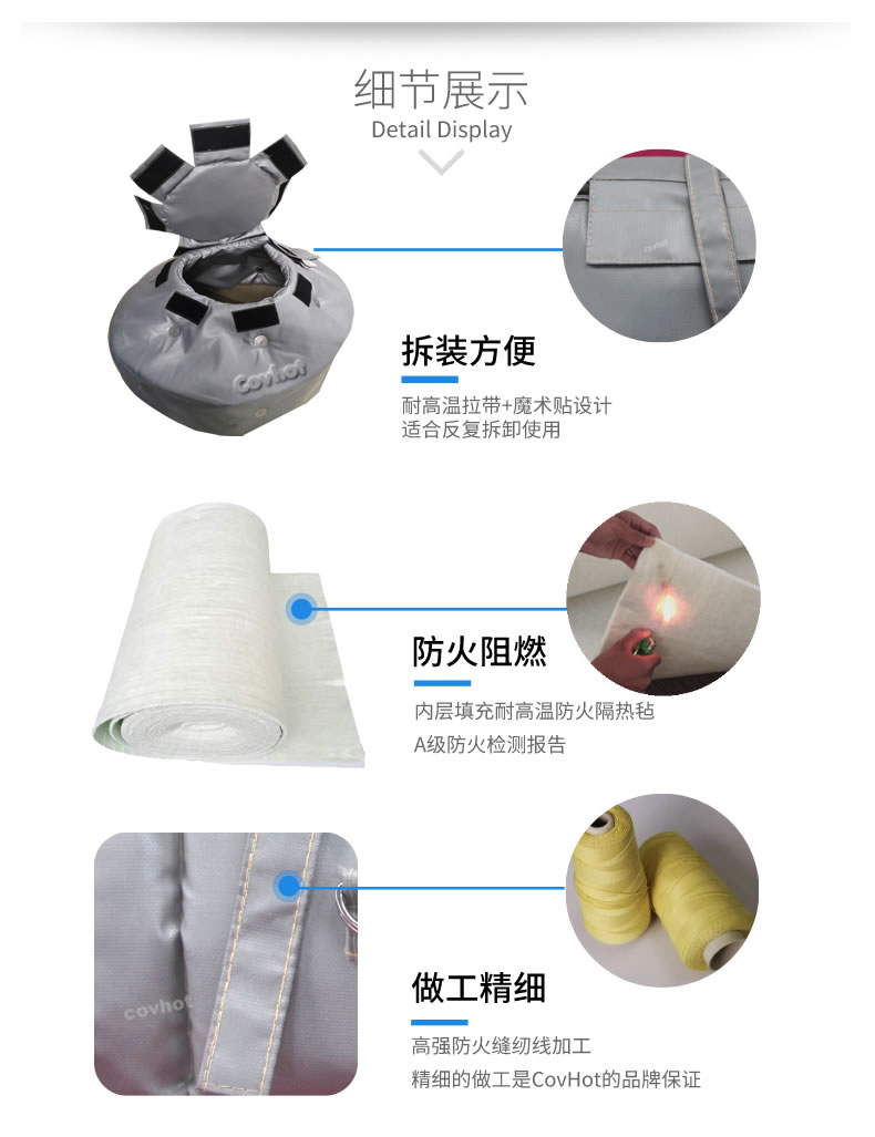 另外,視鏡保溫隔熱套,性能出眾,環(huán)境適應(yīng)性強,可以根據(jù)被保溫設(shè)備的使用環(huán)境,介質(zhì)溫度等條件選擇相應(yīng)的保溫材料,耐溫范圍廣,耐高溫可達(dá)1000℃以上,低溫環(huán)境下同樣不影響保溫套的使用性能。可拆卸保溫套具有良好的憎水性能,表面可擦洗,耐各種腐蝕性,特殊定制材料還可以在強酸強堿環(huán)境下正常工作。