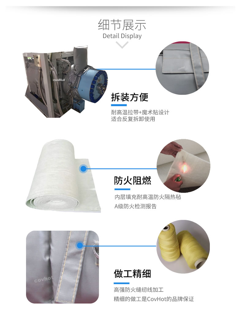 5、厚度:根據(jù)不同設(shè)備,一般15-50mm,溫度高時(shí)可用多層保溫被。