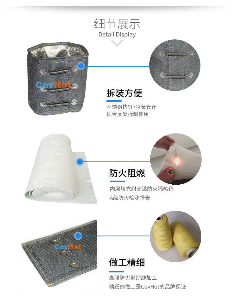 排氣管隔熱套具有易拆裝、可反復循環使用等特點,并且具有柔性,可根據排氣管的形狀,走向設計制作隔熱套,與排氣管貼合度高,包裹性強。能夠有效解決車輛排氣系統保溫隔熱難題。